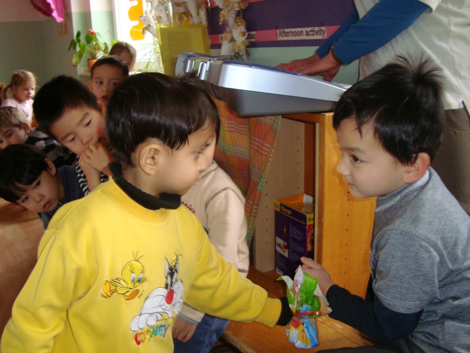 Just discovered he is made a close friend at school. She is an Italian girl, Melissa. Not sure if he has picked up a few Italian words.